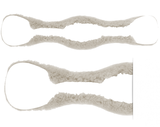 Cette sangle très dégagée au niveau des coudes et doublée en véritable peau d'agneau est très efficace pour protéger la peau du cheval des blessures dues aux frottements sur la zone d'appui de la sangle. Les blessures occasionnées par les sangles présentent rapidement un aspect chronique : Equine-Sarcoïde. L'importante tenue de la pure laine naturelle à la toison épaisse et compacte, assure une répartition idéale de la charge, diminue les pressions et frottements sur la peau du cheval. De plus, la laine naturelle absorbe immédiatement la sueur et l'évacue 8 fois plus vite qu'une fibre synthétique l'air circulant toujours entre les fibres de la laine ; du fait qu'elle assure une bonne régulation thermique, elle est agréable été comme hiver.